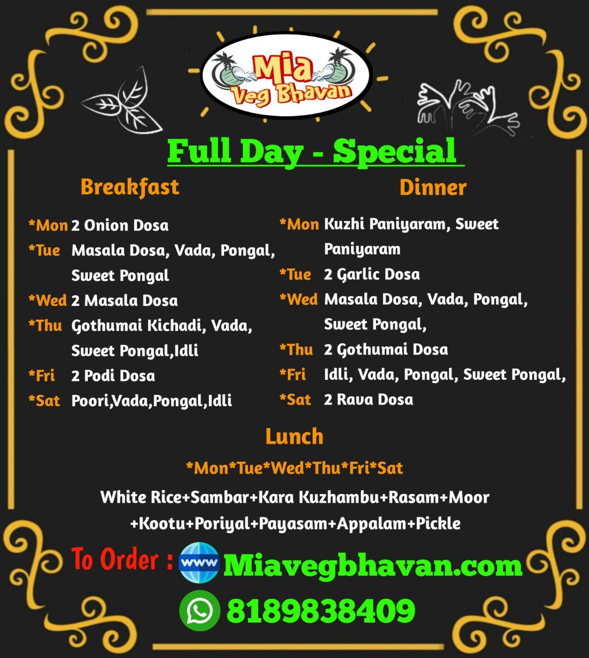Enjoy a delightful lunch subscription featuring a variety of flavorful and satisfying Rice and Full Meals & Home Stlye Meals in Puducherry.